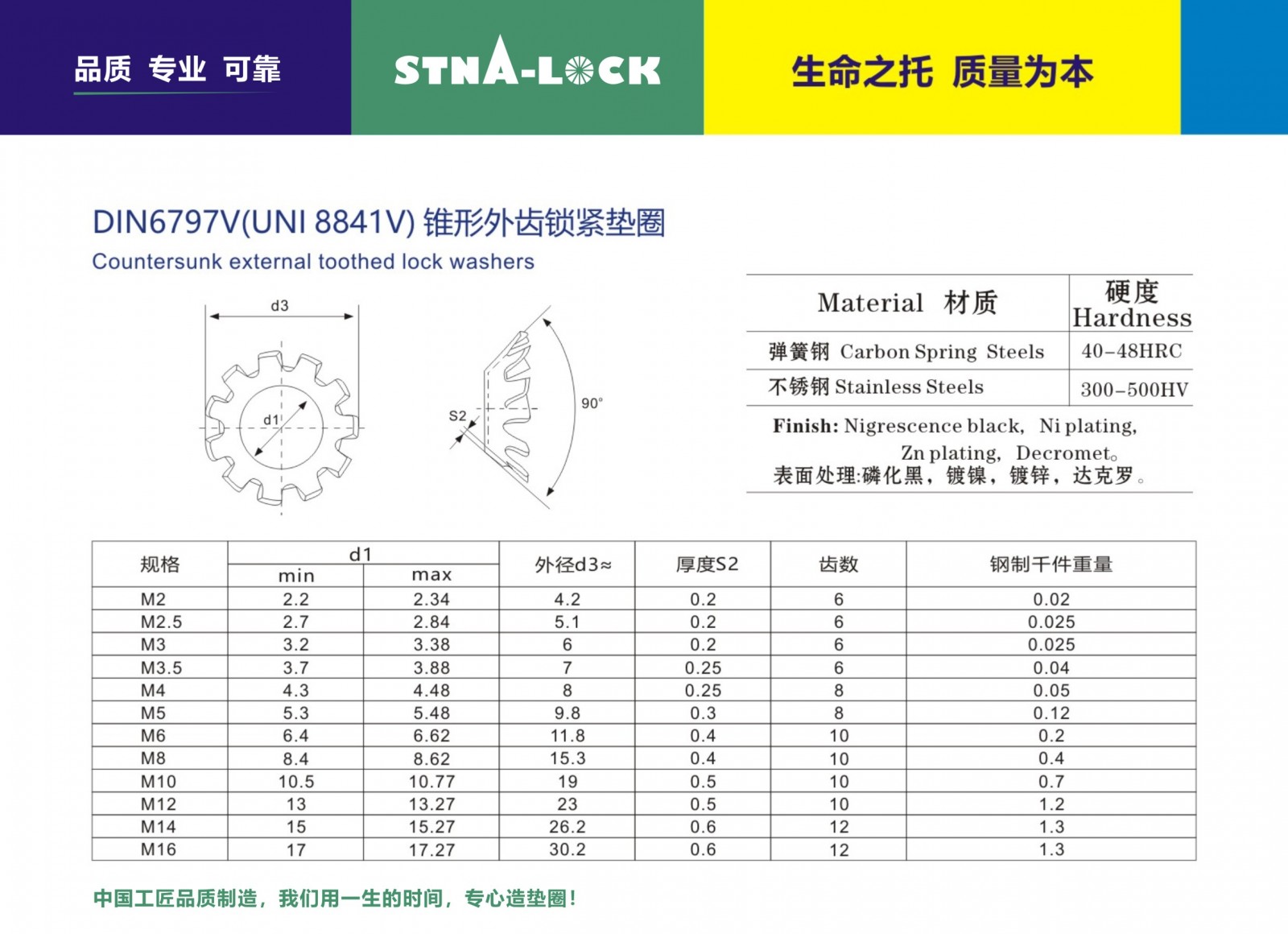 不銹鋼錐形外齒墊圈,執行DIN6797V標準制造為,規格:根據客戶需求 選優質SUS304.SUS316不銹鋼材質,配合沉