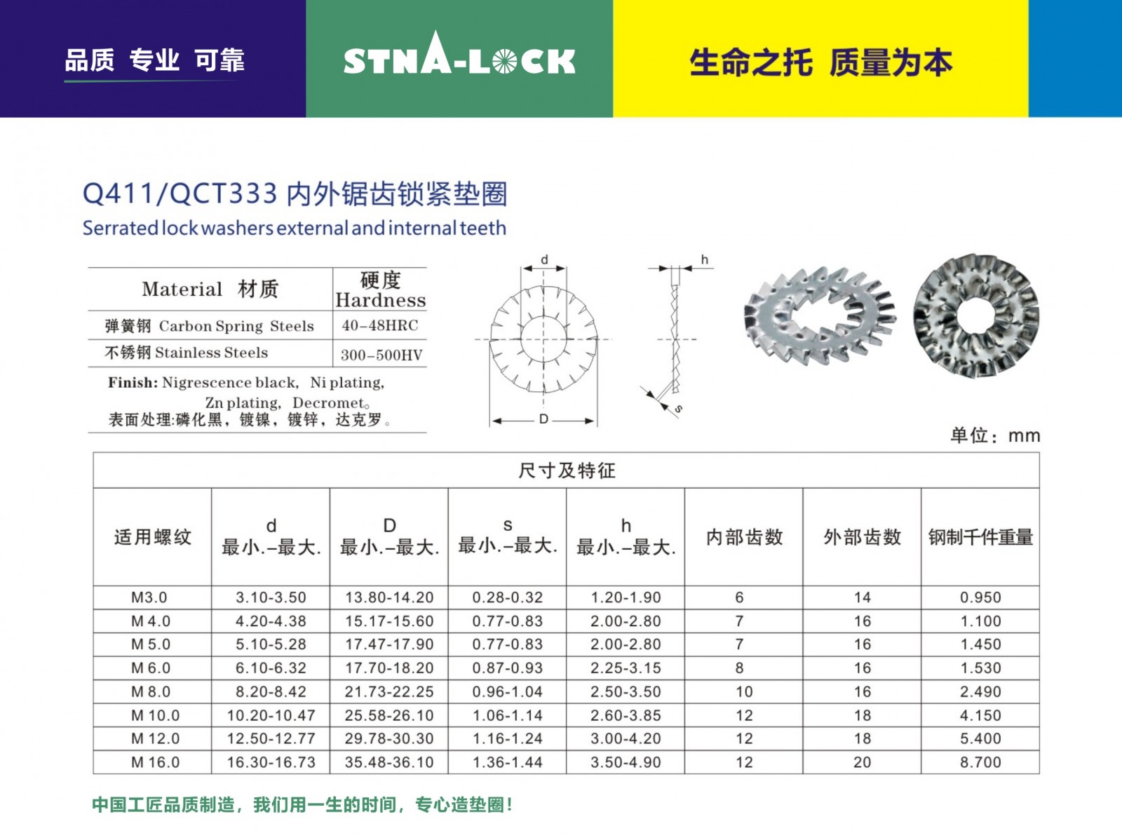 不銹鋼內(nèi)外鋸齒墊圈QCT/333