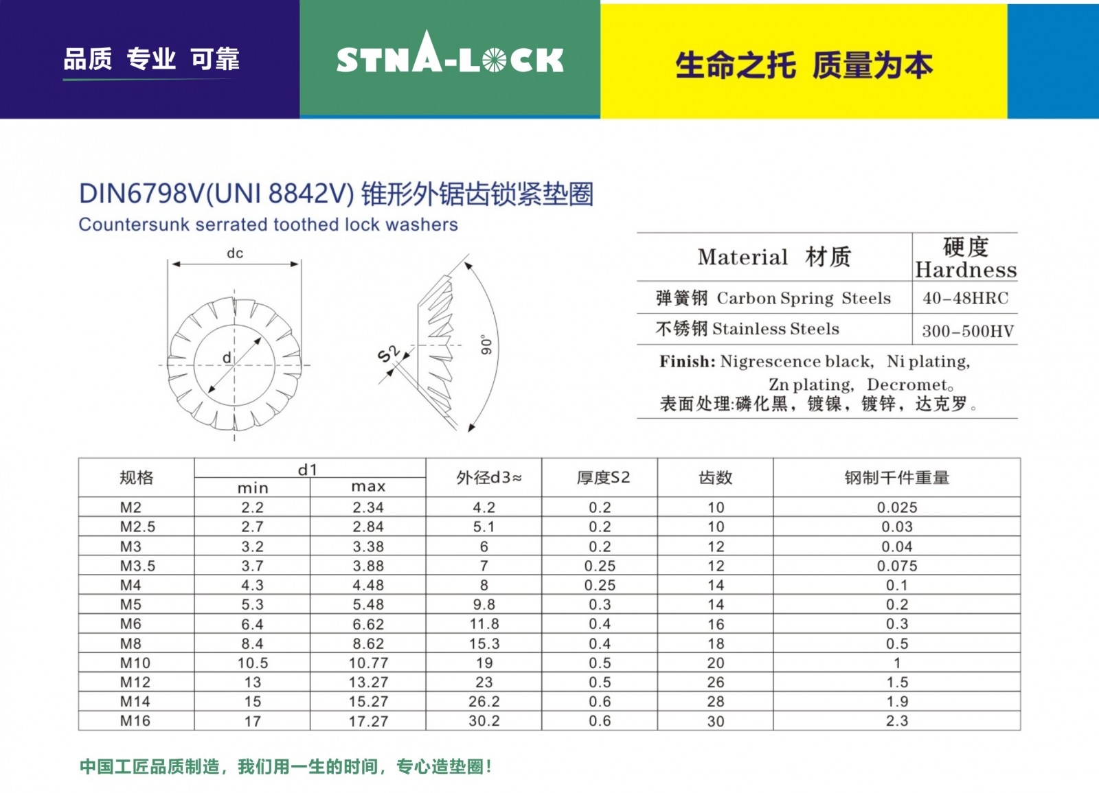 不銹鋼錐形外鋸齒鎖緊墊圈DIN6798V