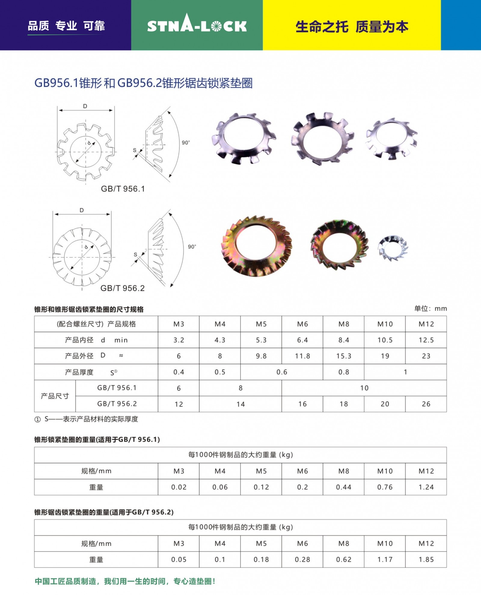 GB956.2錐形外鋸齒鎖緊墊圈,鍍鋅錐形外鋸齒鎖緊墊圈,常用規格:M3-M12備有現貨, 也可根據客戶需求提供訂制尺