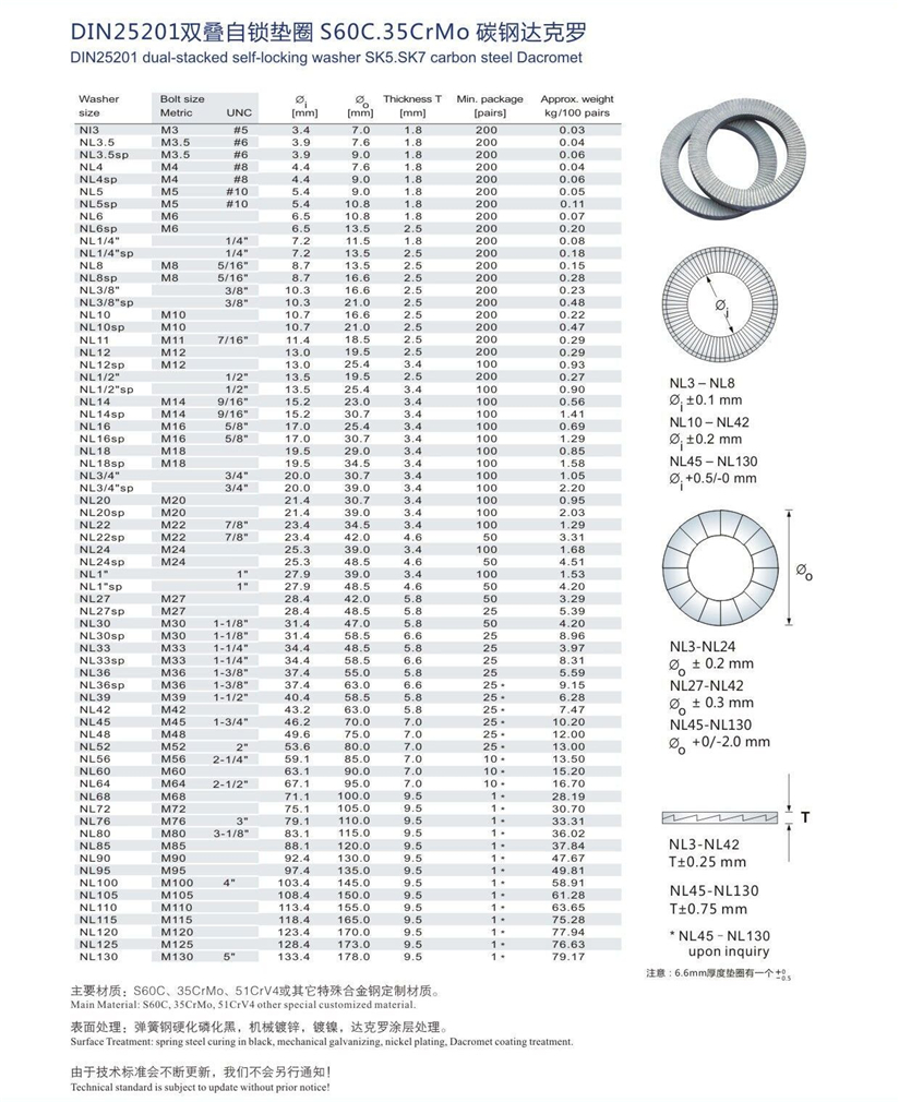 制造工藝:DIN25201標(biāo)準(zhǔn)墊圈全部使用S60C/SK5及特殊合金鋼材質(zhì)、經(jīng)過全硬化處理HRC45-52、硬度等級(jí)14.9級(jí)!