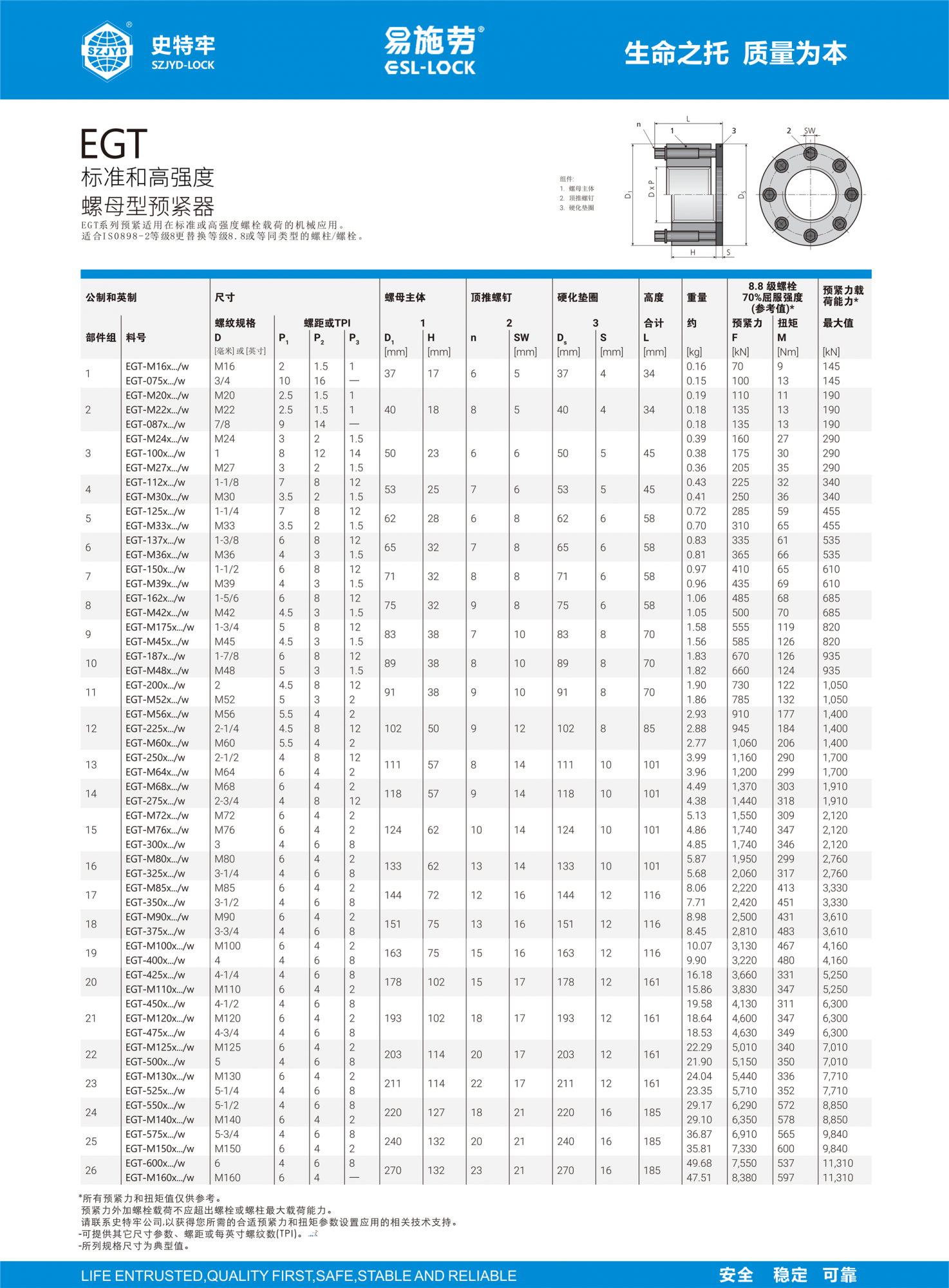 多頂推超級預緊器,可在很小空間安裝,使用簡單工具即可輕松預緊,節省安裝時間,ESL-LOCK品牌易施勞超級螺母具有完全的防松鎖緊功能,可多次拆卸重復使用。特別適用于M24規格以上大型螺栓鎖緊!一擰永固,永不松動!使用常規格為合金材料及特殊不銹鋼合金材料以及鎳基合金材料!更多了解歡迎咨詢我們.....