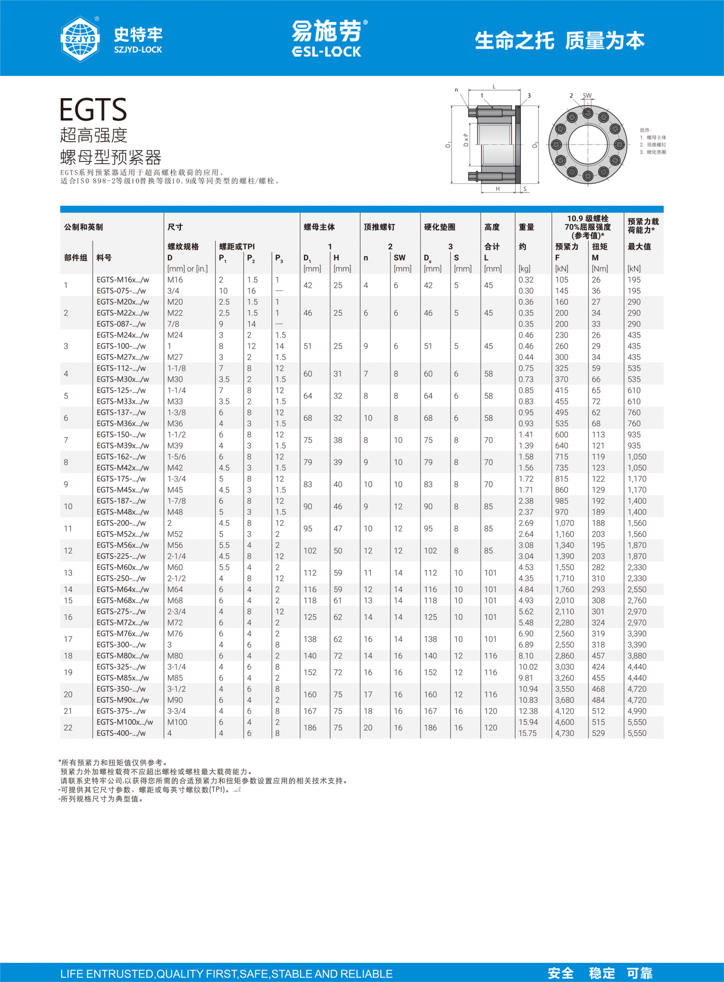 多頂推超級預緊器,可在很小空間安裝,使用簡單工具即可輕松預緊,節省安裝時間,ESL-LOCK品牌易施勞超級螺母具有完全的防松鎖緊功能,可多次拆卸重復使用。特別適用于M24規格以上大型螺栓鎖緊!一擰永固,永不松動!使用常規格為合金材料及特殊不銹鋼合金材料以及鎳基合金材料!更多了解歡迎咨詢我們.....