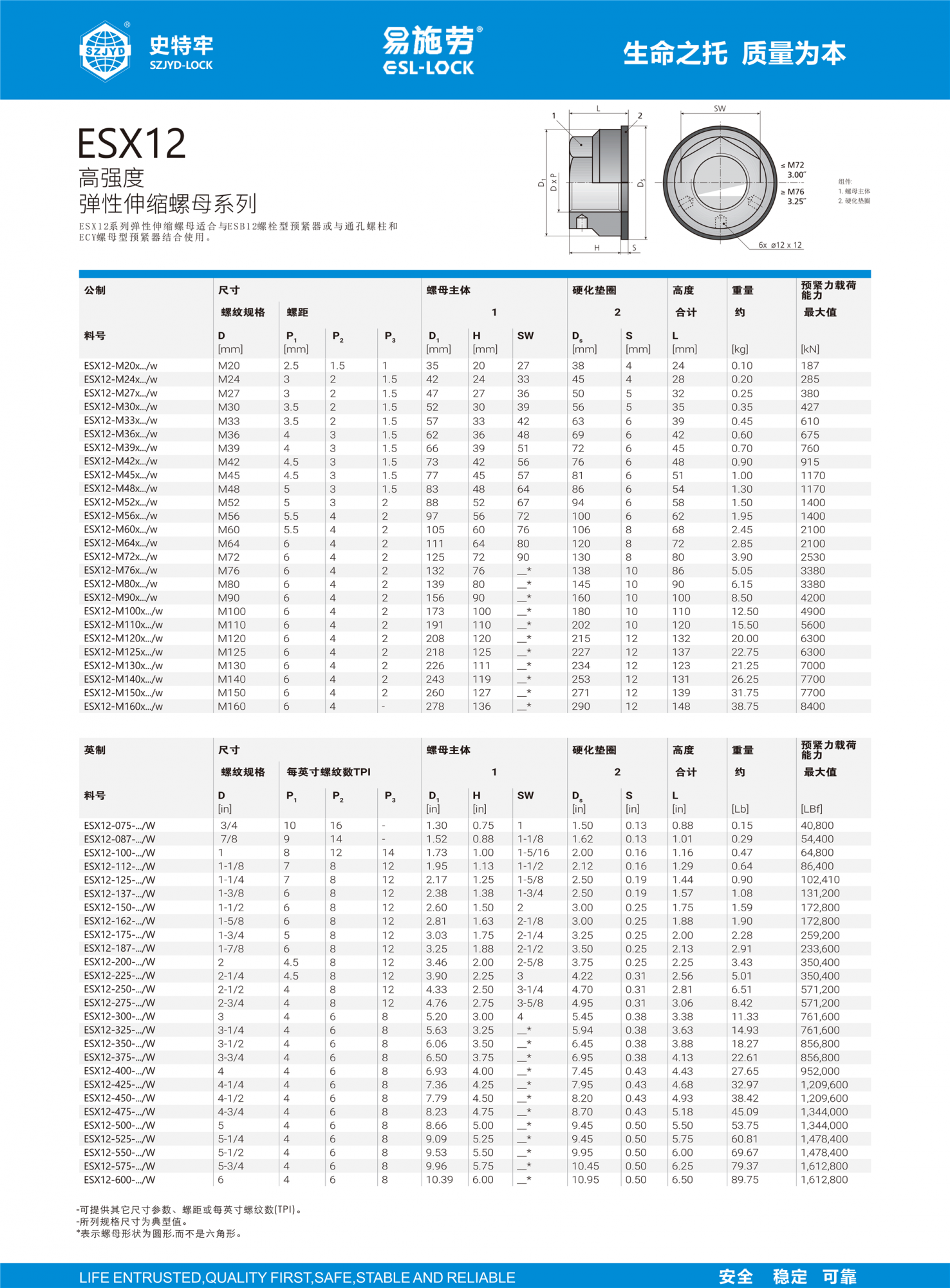 多頂推超級預緊器,可在很小空間安裝,使用簡單工具即可輕松預緊,節省安裝時間,ESL-LOCK品牌易施勞超級螺母具有完全的防松鎖緊功能,可多次拆卸重復使用。特別適用于M24規格以上大型螺栓鎖緊!一擰永固,永不松動!使用常規格為合金材料及特殊不銹鋼合金材料以及鎳基合金材料!更多了解歡迎咨詢我們.....